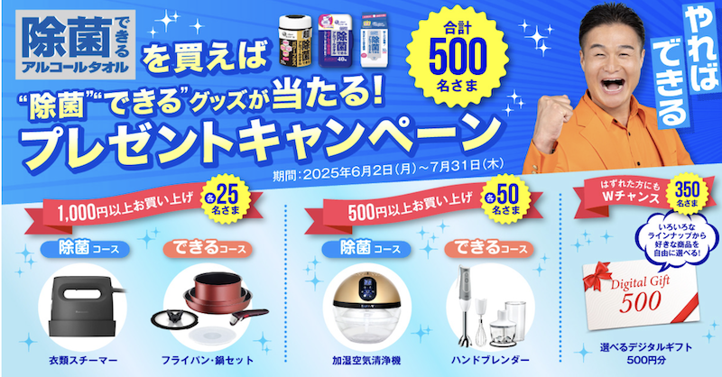 【エリエール】除菌できるアルコールタオルを買って当たる!プレゼントキャンペーン(〜2025/7/31)