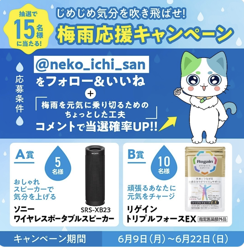 【第一三共ヘルスケア】ねこいちさん梅雨応援キャンペーン(終了)