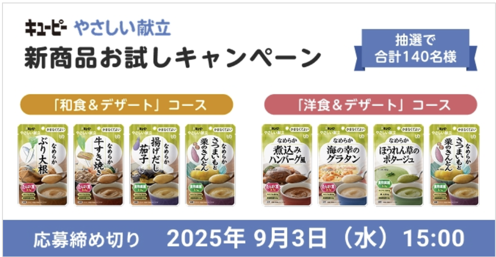 【キユーピー】やさしい献立新商品おためしキャンペーン(〜9/3 15時)