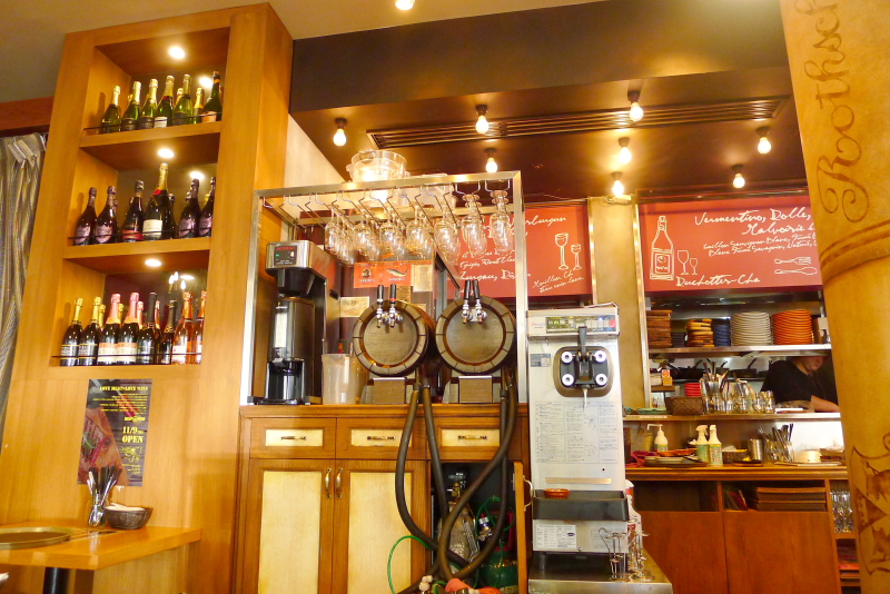 ベルサイユの豚はお肉料理と西洋ワインが楽しめるカジュアルなワインバル。パティオに面していて、窓が大きいので開放感もあります。そのため、女性一人でも入りやすいです。
